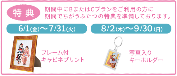 6月~9月の期間中の撮影で通常価格よりお得に撮影できるプランです♪
